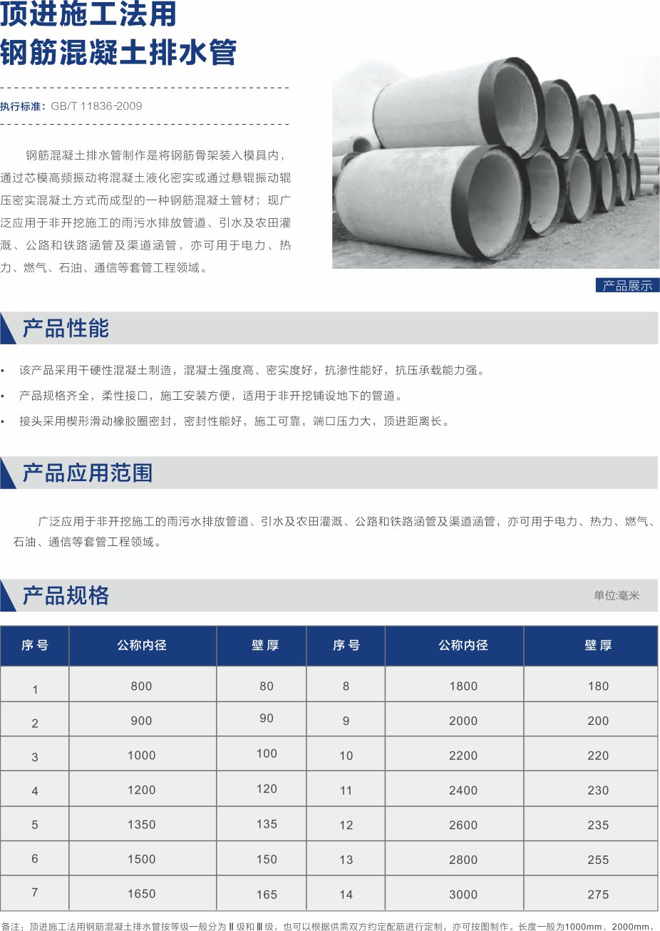 顶进施工法用钢筋混凝土排水管