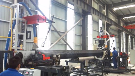 近日,我公司新建的一条3000mm钢带增强螺旋双壁波纹管生产线和一条钢带增强排水管承插接头生产线建成投产。随着两条新线的投产,我公司生产的钢带增强螺旋双壁波纹管口径突破到了3米;在钢带管连接上也可生产电热熔式和密封圈式承插接头,为用户提供了多种选择。